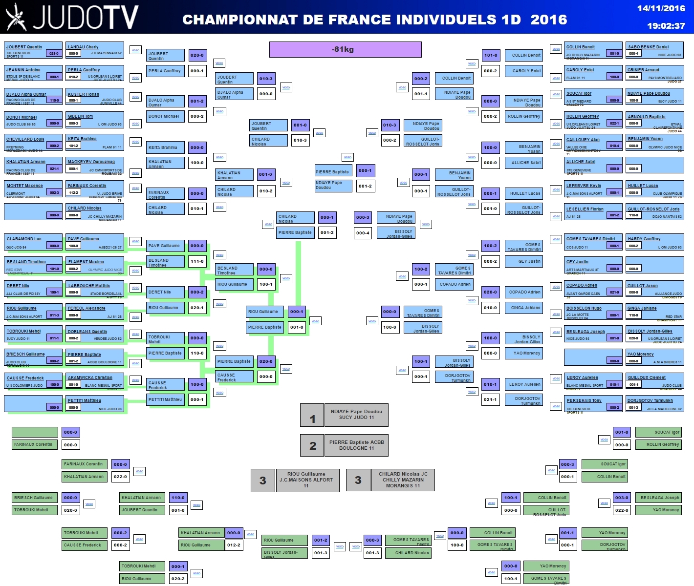 Championnat de France 1D 2016 : tableau -81 kg