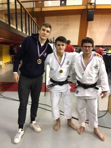 Les garçons ont quant à eux terminé à la 3e place. 24 équipes étaient en lice et le tirage, d’après Frédéric, était difficile. L’aventure commence bien avec une victoire 5 à 0 contre Sainte-Geneviève Sport. La rencontre suivante face au Racing Club de France s’avère plus difficile et notre équipe s’incline 2 à 3 sur une défaite au golden score lors du dernier combat. L’équipe s’impose ensuite 4 à 1 face au Judo Club Raincy Villemomble et 3 à 0 contre le Judo Melun Val-de-Seine. Les garçons finissent par arracher la 3e place en battant le club d’Asnières au 5e combat. Ils sont donc qualifiés pour le championnat de France par équipes.