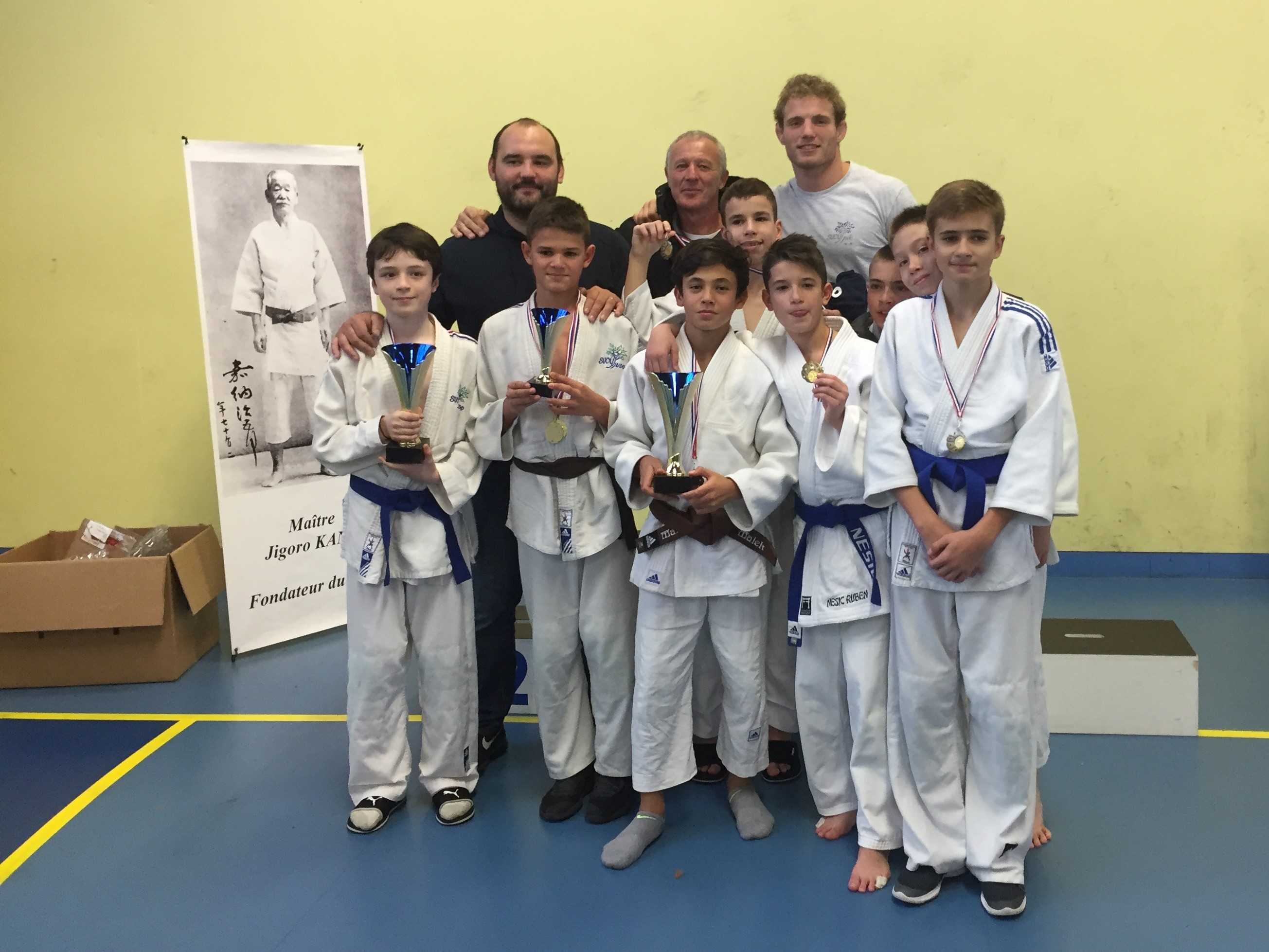 Résultats de la coupe du Val-de-Marne minimes par équipes 2018 https://www.sucyjudo.fr/actualites/2018/11/resultats-de-la-coupe-du-val-de-marne-minimes-par-equipes-2018/ Tue, 20 Nov 2018 19:00:30 +0000 https://www.sucyjudo.fr/?p=3820 Dimanche 11 novembre s’est déroulée la coupe du Val-de-Marne minimes par équipes. Nos minimes ont représenté le club avec 6 équipes. Voici les résultats. L’équipe mouche 1 remporte la compétition. -42 kg : Adrien Dutilloy, -46 kg : Marti d’Hervé, -50 kg : Merwan Fournel, -55 kg : Jacquin Victor, -60 kg : Maxime Lucas. […]